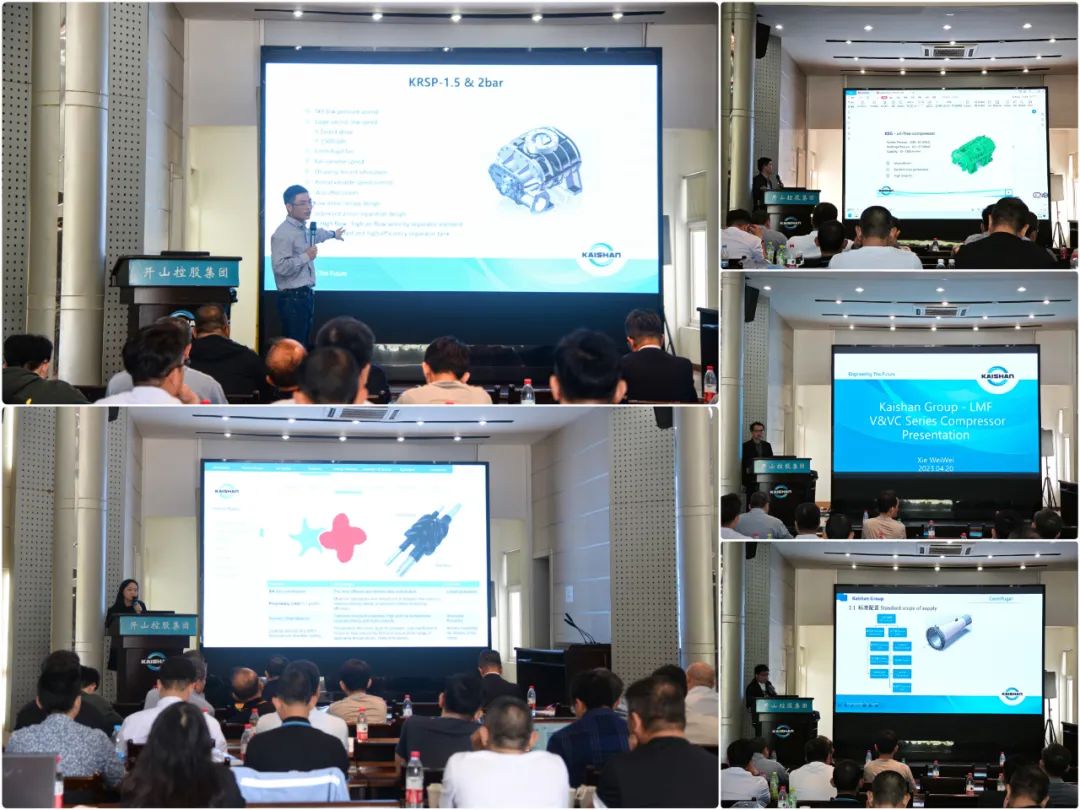 浙江開山壓縮機有限公司質量總監施勇做了開山傳統螺桿產品海外市場的支持流程和質量提升流程匯報,開山服務(上海)有限公司總經理楊轍做了離心機、PET等產品海外市場服務管理及服務培訓。